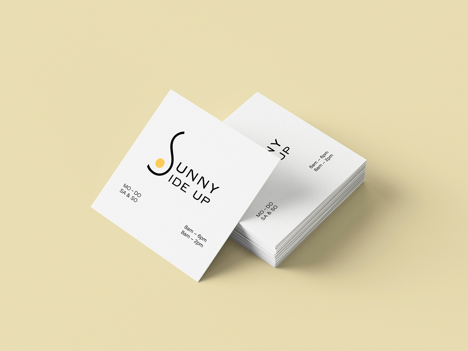 The branding for Sunny Side Up Café is built around a clean, modern visual identity that reflects warmth, clarity, and approachability. The logo combines minimalist typography with a subtle circular accent. A restrained color palette and balanced layout ensure a refined, contemporary look that enhances brand recognition across signage, packaging, and digital applications.